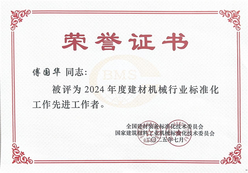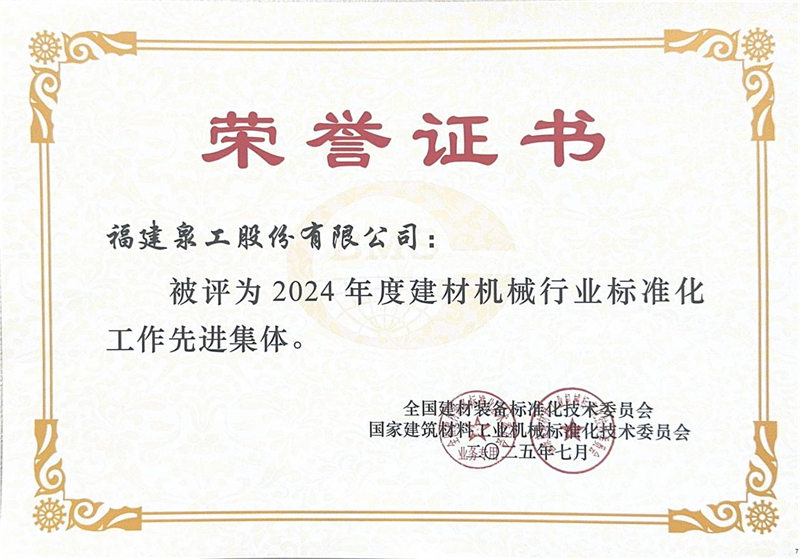 Na podelitvi pohval, ki je potekala ob istem času, je Quangong Machinery Co., Ltd prejel naziv "Napredni kolektiv pri standardizacijskem delu v industriji strojev za gradbene materiale v letu 2024", namestnik generalnega direktorja podjetja Fu Guohua pa je bil nagrajen z nazivom "Napredni delavec pri standardizacijskem delu v industriji strojev za gradbene materiale v letu 2024".