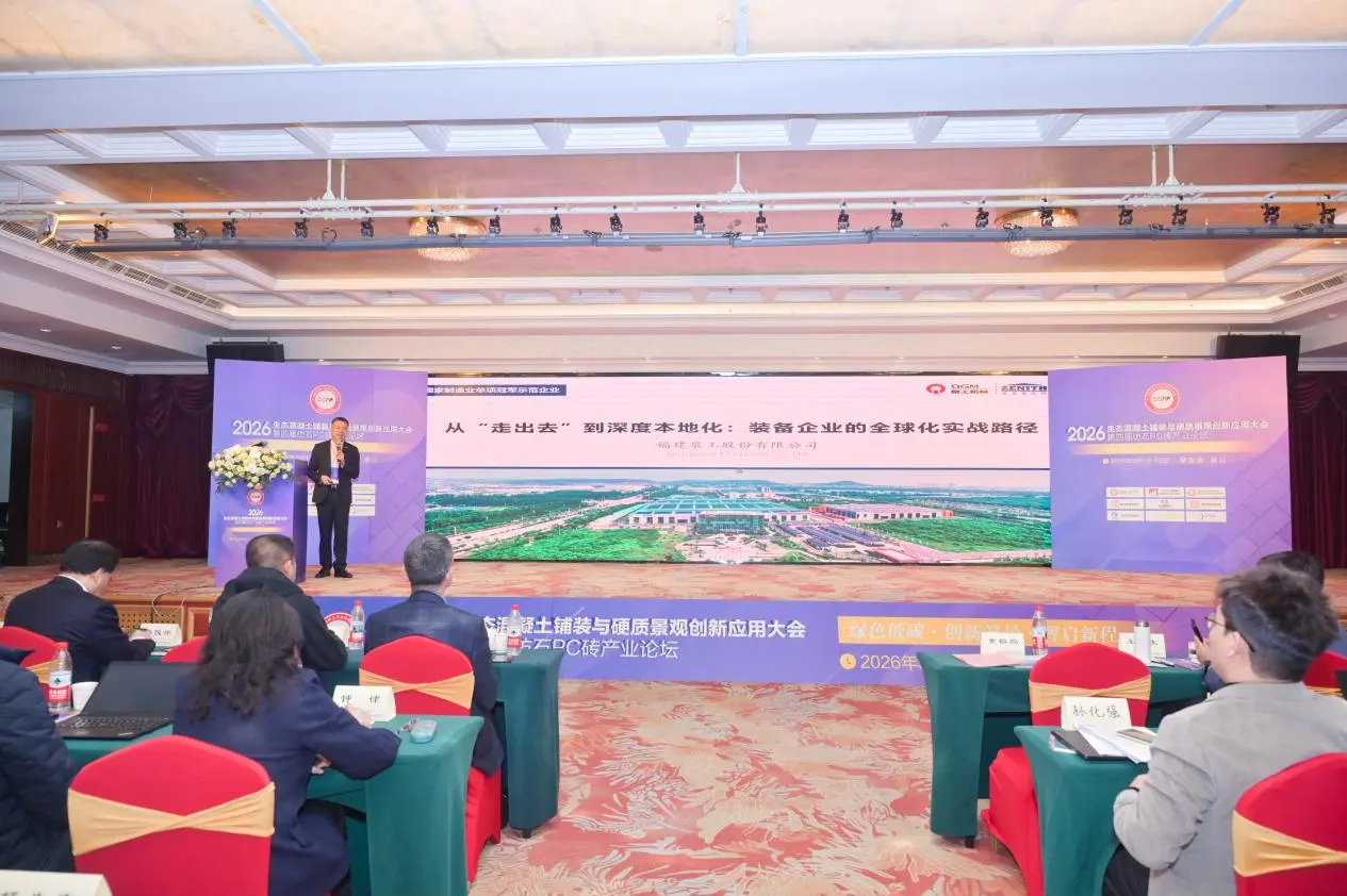 Od 13. do 15. marca je v Jinjiangu v Fujianu potekala konferenca 2026 o inovativnih aplikacijah ekoloških betonskih tlakovcev in okrasnih površin, skupaj s 4. industrijskim forumom o PC opekah iz imitacije kamna. Konferenca z naslovom "Zelena in nizkoogljična: inovativne krajine, inteligentno načrtovanje nove poti" je združila strokovnjake, učenjake in predstavnike podjetij s področij, vključno z raziskavami in razvojem, proizvodnjo, dizajnom, konstrukcijo, testiranjem in proizvodnjo opreme. Skupaj so raziskovali inovativne razvojne poti za ekološko industrijo betonskih tlakov in gradbenih površin. FujianQuangong Machinery Co., Ltd.je bilo povabljeno na dogodek, kjer je postavilo razstavni prostor za predstavitev tehnoloških dosežkov podjetja in celovitih sistemskih rešitev na področju opreme za proizvodnjo betonskih izdelkov.