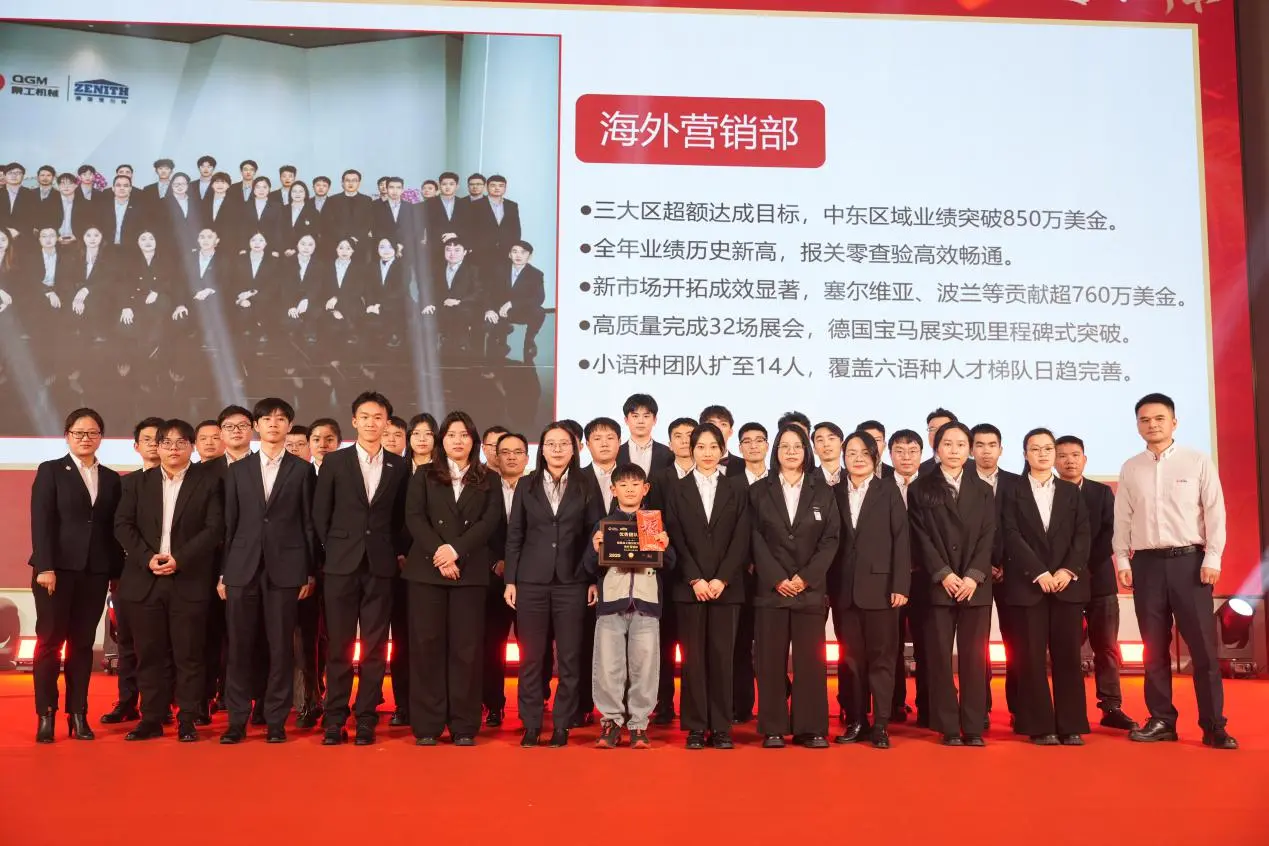 Nato je Fu Xinyuan, generalni direktor podjetja Quangong Machinery Co., Ltd., imel sklepni govor. Poudaril je, da je v kompleksnih in nenehno spreminjajočih se globalnih razmerah stalen razvoj podjetja neločljivo povezan s skupnimi napori vseh zaposlenih. Leta 2025 je čezmorska marketinška ekipa prva dosegla svoj letni cilj uspešnosti, domači trg pa se je aktivno prilagajal spreminjajočim se razmeram, uspešno ustvaril vzorčne projekte v več ključnih mestih in pridobil visoko priznanje strank. V prihodnje bo podjetje uradno promoviralo vzporedno strategijo treh blagovnih znamk: Cenit, ki se osredotoča na trg ultra-visokega cenovnega razreda, Quangong, ki temeljito kultivira trg srednjega do višjega cenovnega razreda, in Daorvik, ki služi trgu srednjega cenovnega razreda, s čimer nenehno krepi svojo globalno konkurenčnost. Izrazil je tudi svojo iskreno hvaležnost ekipam, ki bodo še vedno hodile na čezmorske bojne črte, da bi izvajale montažna in zagonska dela pred in po pomladnem festivalu.