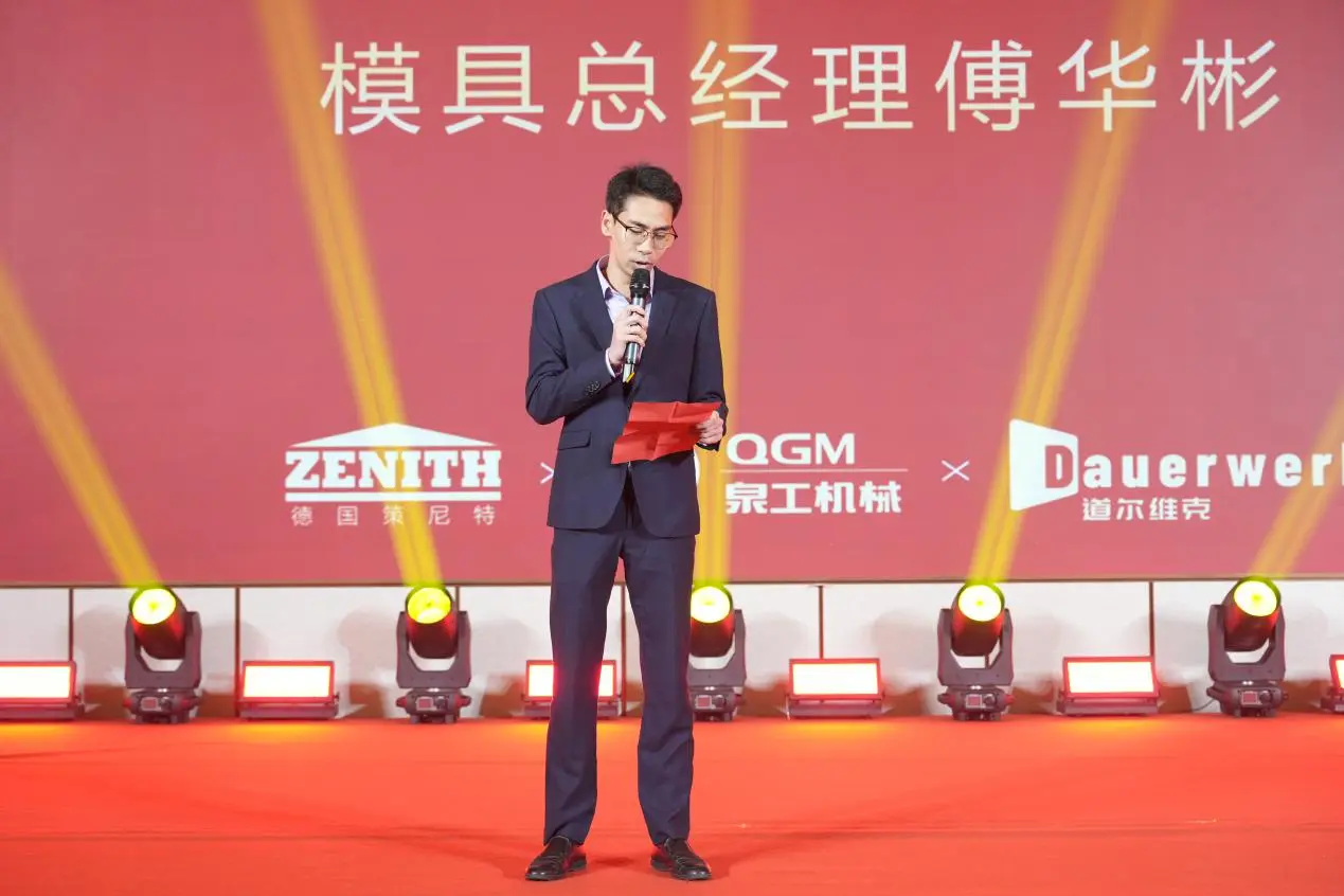 Fu Huabin, generalni direktor podjetja Quangong Mold Company, je v svojem govoru pregledal razvojne dosežke podjetja za plesni v letu 2025. V preteklem letu se je celotna proizvodna zmogljivost podjetja za kalupe povečala za 16 % medletno. Več ključnih procesov je bilo tehnološko nadgrajenih in avtomatiziranih, kar je bistveno izboljšalo kakovost in življenjsko dobo izdelkov. Hkrati je podjetje z vzpostavitvijo bencinskih servisov v tujini nenehno krepilo svoje servisne zmogljivosti na čezmorskih trgih, kar je povzročilo 30-odstotno povečanje poslovanja z rezervnimi deli, kar je zagotovilo močno podporo celotnemu razvoju skupine.